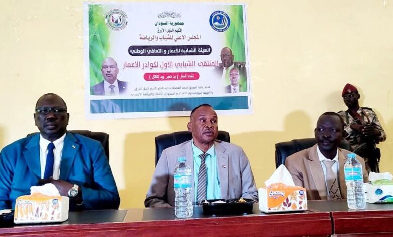 واشاد احمد ادم بدور شباب النيل الأزرق في دعم جهود الدولة نحو التنمية المستدامة والتعافي الوطني، وطالب ببذل المزيد من الجهود للنهوض بالاقليم.