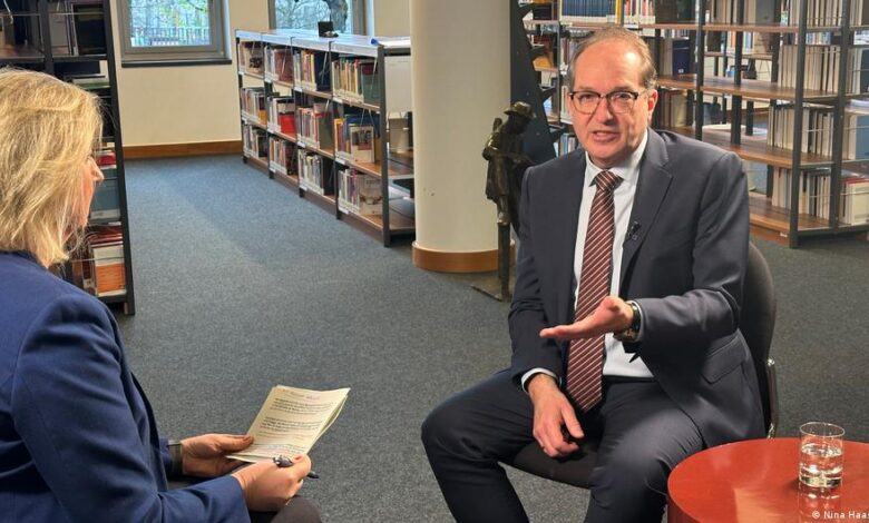 أكد وزير الداخلية الألماني ألكسندر دوبرينت في حوار له مع مؤسسة دويتشه فيله DW الألمانية الإعلامية، أنه لم يبالغ في وعوده المتعلقة بسياسة الهجرة، مشيراً إلى أن نهجه “صارم للغاية” وأن الحكومة اتخذت منذ اليوم الأول الإجراءات الضرورية لتعزيز الرقابة على الحدود وتنفيذ عمليات الإرجاع.